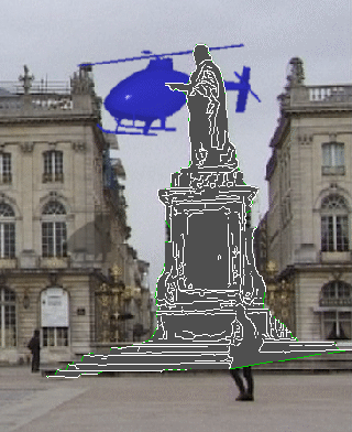 | dc.description.abstract | This page is an extension of our paper entitled "Registration methods for harmonious integration of real and computer generated objects". We focus in this paper on the problem of adding computer-generated objects in video sequences. We propose a robust method for viewpoint computation which utilizes 3D knowledge on the scene as well as 2D/2D correspondences of key-points. Next, we extend this method to the case of unknown focal length varying from image to image. Finally, we describe how to solve possible occlusions between the computer generated objects and the real scene. Many videos illustrating these different points are presented here. | en_US |